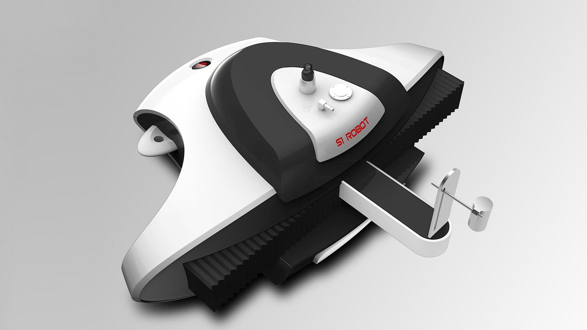 強(qiáng)調(diào)張揚(yáng),大氣的視覺(jué)效果,追求功能和形式的和諧統(tǒng)一的現(xiàn)代化代工爬壁噴涂機(jī)器人。結(jié)合VI,運(yùn)用簡(jiǎn)約的設(shè)計(jì)語(yǔ)言,增強(qiáng)機(jī)器的識(shí)別性,圓潤(rùn)曲線強(qiáng)調(diào)張揚(yáng)大氣的視覺(jué)效果,功能和形式的和諧統(tǒng)一盡顯動(dòng)感、智能、科技感。